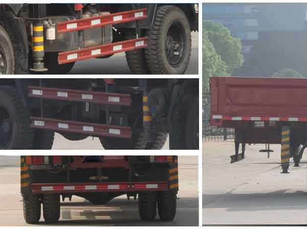 選裝不同形式貨箱,隨底盤選裝前面罩;選裝單排駕駛室;駕駛室形式/整車長/貨箱長/軸距/后懸:排半/7330/4310/3900/2145,單排/7330/4500/3900/2145;整備質(zhì)量/載質(zhì)量/起重機型號/起重機質(zhì)量(Kg) / 最大起升載荷(Kg)對應(yīng)關(guān)系:7120/4680/SQ5SK3Q/2000/5000, 7720/4080/SQ6.3SK3Q/2600/6300;發(fā)動機油耗申報值均為23,防護欄均采用Q235鋼板壓制成型,均采用螺栓連接方式;后防裝置下邊緣的最大離地高度為540mm,斷面尺寸為120mm?0mm。文字噴圖位置和車輛顏色可變化。